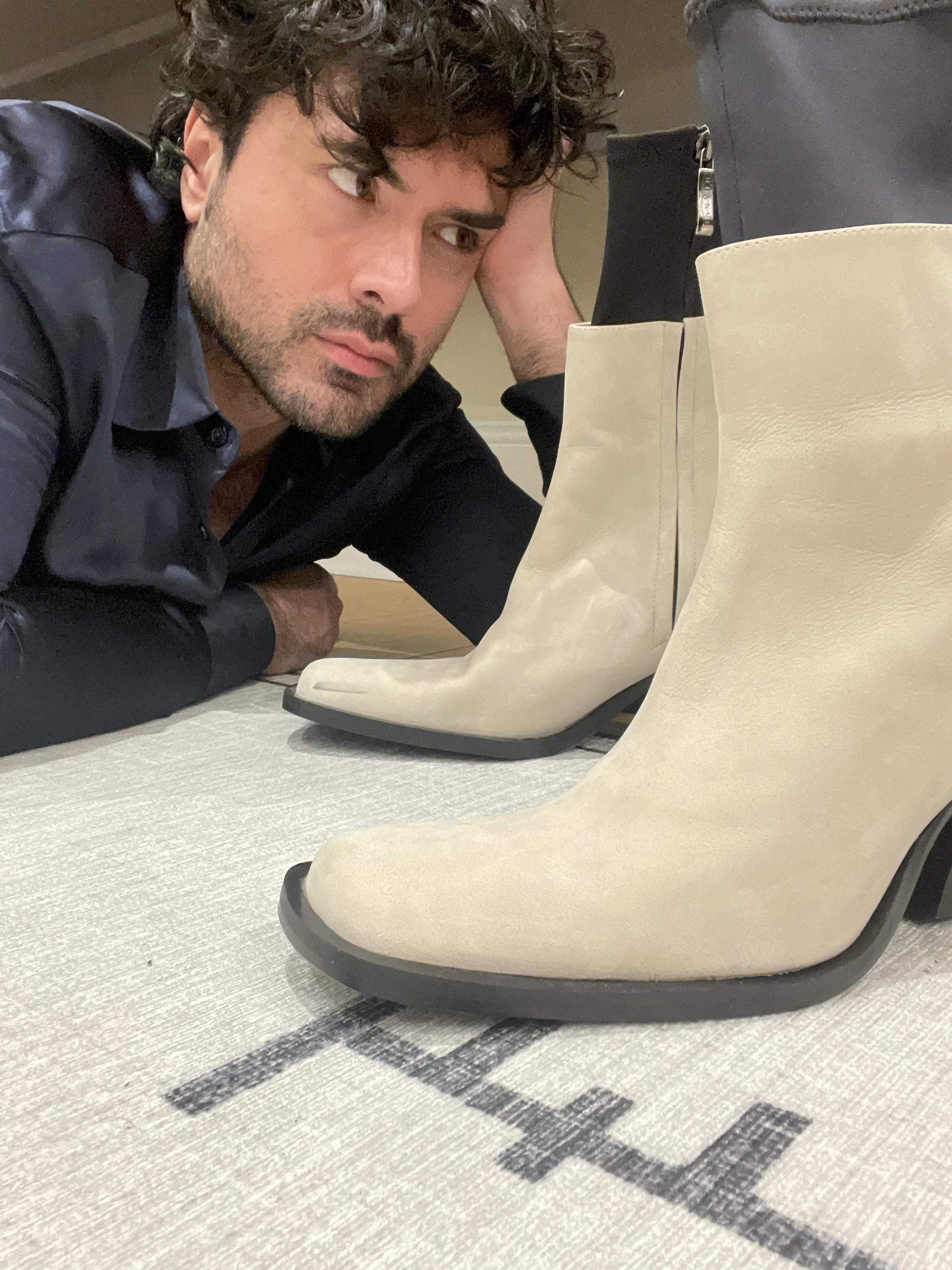 In 2010, Alan won a scholarship to study at the Prestigious international design school, POLIMODA in Florence, Italy, founded by Salvatore Ferragamo. Whilst studying there, Alan was classically trained in the art of bespoke shoemaking, where he worked alongside master shoe artisan Roberto Ugolini. In 2016 Alan was a finalist in Vogue Italia Who’s On Next.